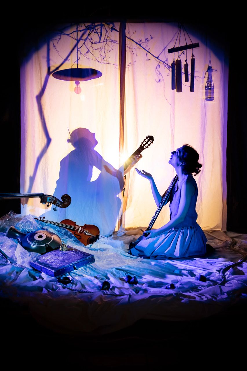 « Là eau » est un univers de poche où s’entrelacent la musique, le mouvement et la poésie. Installé au cœur du dispositif scénique, le spectateur est invité à un voyage au fil de l’eau, remontant son cycle depuis la mer jusqu’au ciel : fermer les yeux, plonger dans le son, se laisser bercer… Les instruments et corps sonores se mêlent aux bandes sons de la nature. Au-dessus de cela, la voix murmure, chante, narre et entraîne dans une histoire en forme de rêve. « Là eau » comme une histoire qui convie au repos de manière poétique, à se détacher un temps du quotidien et se reconnecter à l’essence de l’être et du monde. L’eau, comme élément mouvant et précieux, y trace un fil sensible qui fait lien.